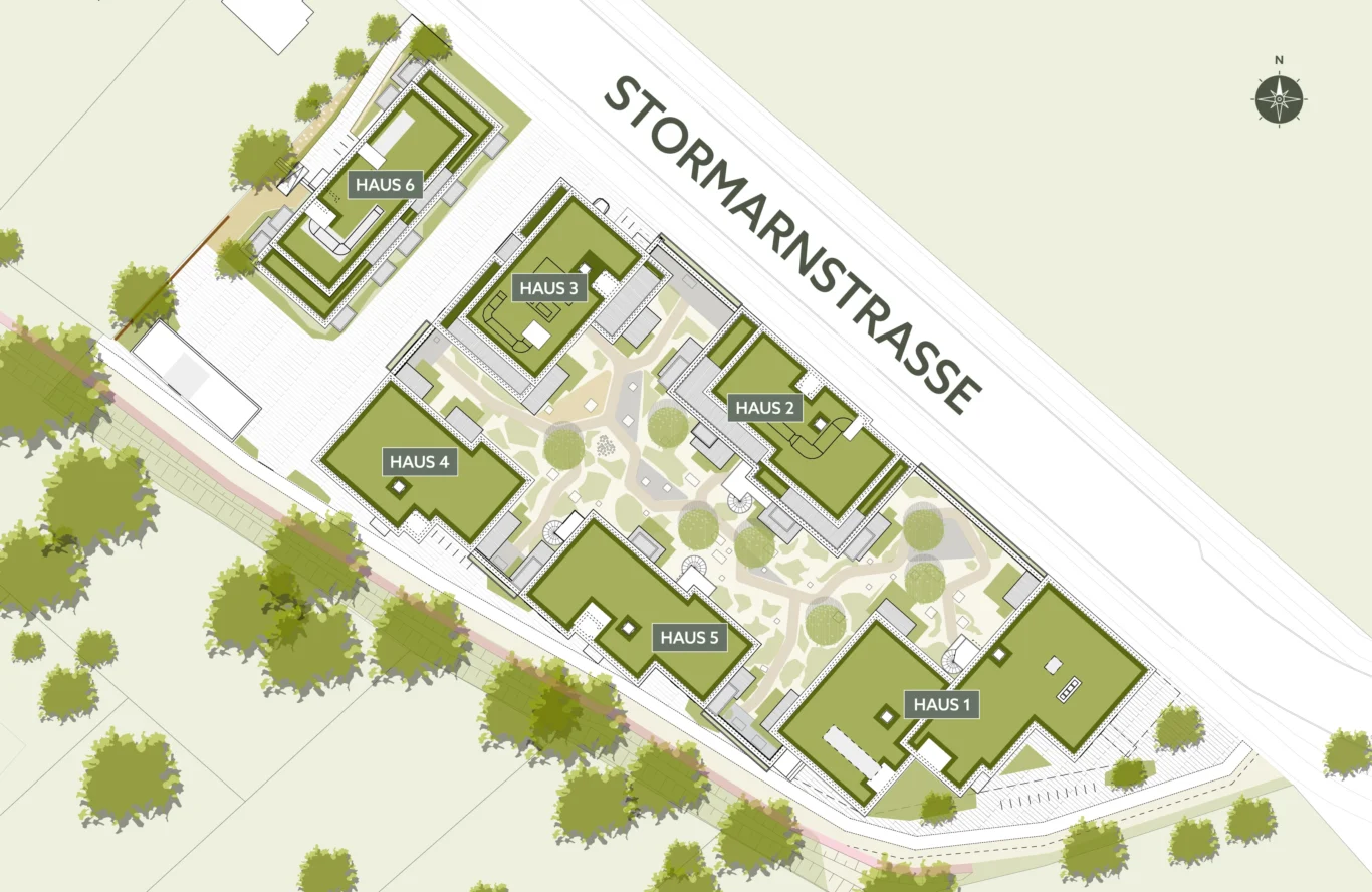 Das Quartier bietet eine zentrale Lage in Ahrensburg und eine ideale ÖPNV-Anbindung. Der Bahnhof und die Innenstadt sind in wenigen Minuten erreichbar. In unmittelbarer Nähe befinden sich Sportplätze, Ärzte, Apotheken, Geschäfte und vieles mehr.